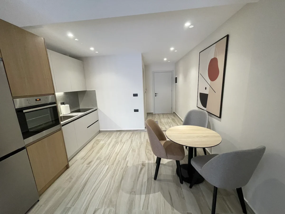 The apartment is organised in a modern sleeping space with a double bed and a comfortable sofa bed where you can just relax and enjoy tv or use it as a bed for your child or baby since it is very comfortable and can easily unfold